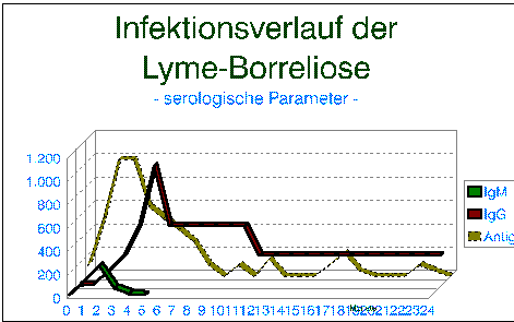 Die Borrelieninfektion ist grundsätzlich in jedem Stadium der serologischen Diagnostik zugänglich. Dabei ist allerdings zu beachten, daß insbesondere in den ersten 4 bis 6 Wochen noch nicht in jedem Fall Antikörper nachweisbar sind. Die humorale Immunantwort benötigt mindestens 2 Wochen, bis die ersten Antikörper nachweisbar werden.