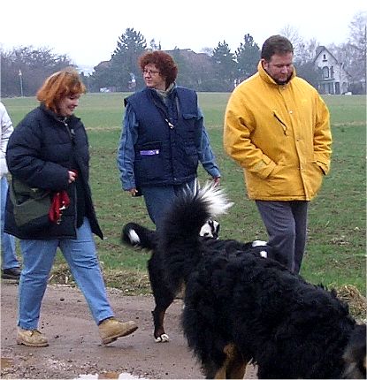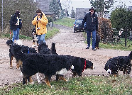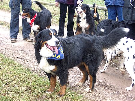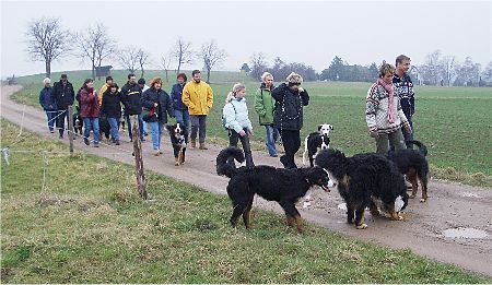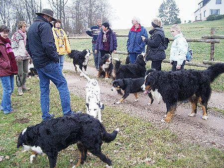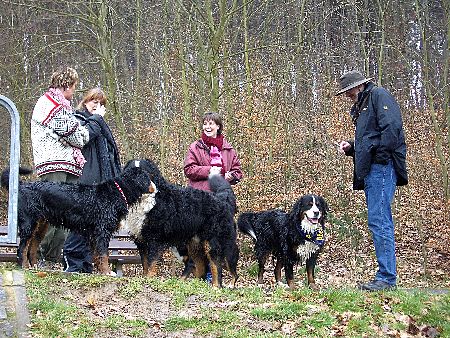 Lucy mit Winnie und Stefan sowie Ursula mit Quardo, dem Entlebucher sind auch noch