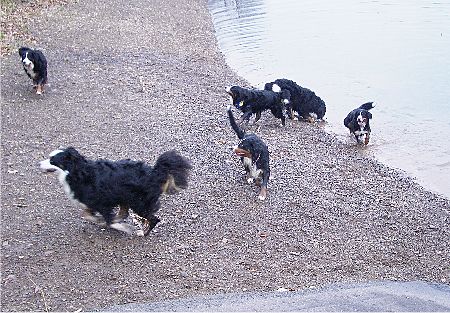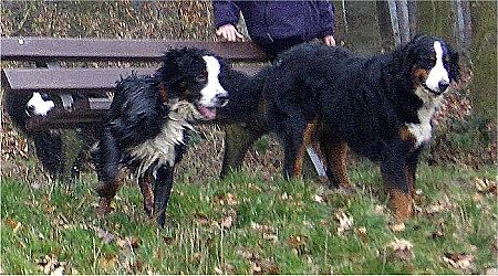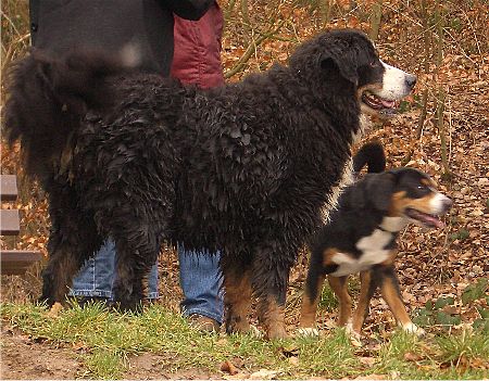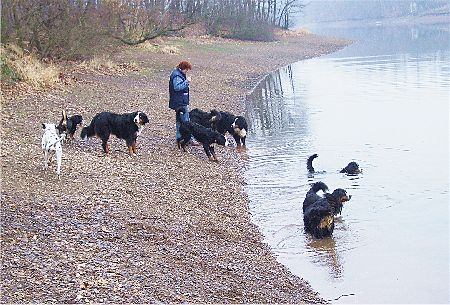 | Hier ist Beas Sam mit Quardo. Den beiden war das Wasser trotz Fell wohl nicht so angenehm. | ![]() |