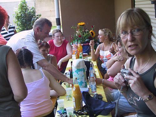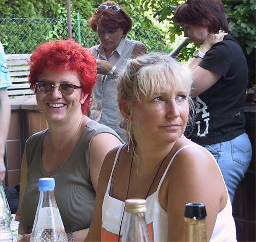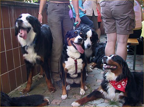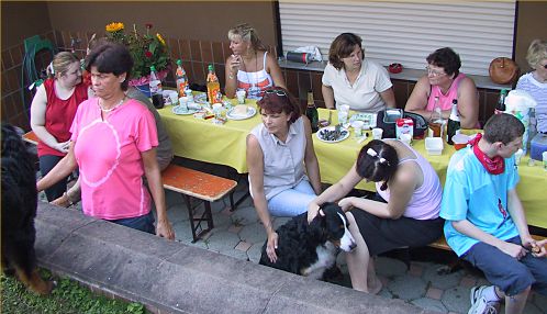 So langsam wurde es auch bei den Zweibeinern voll. Im Vordergrund Ingrid (mit Jeanny und Toby), die wie ebenfalls neu kennen lernen konnten.