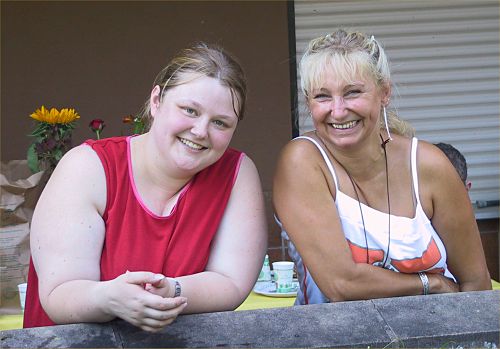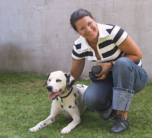 Und da ist unsere Gastgeberin: Nicole; hier neben Iris, dem Frauchen von Fehlfarbenberner Figo (der in Wahrheit ein Dalmatiner ist. Aber nicht weitersagen).